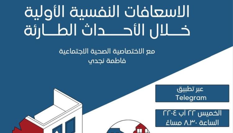 حيث تتناول هذه الورشة اهم التوصيات التي يجب العمل بها في حال حصول حدث طارئ و كيفية رصد الحاجات و الحالات النفسية الصعبة للضحايا و التعامل معها.